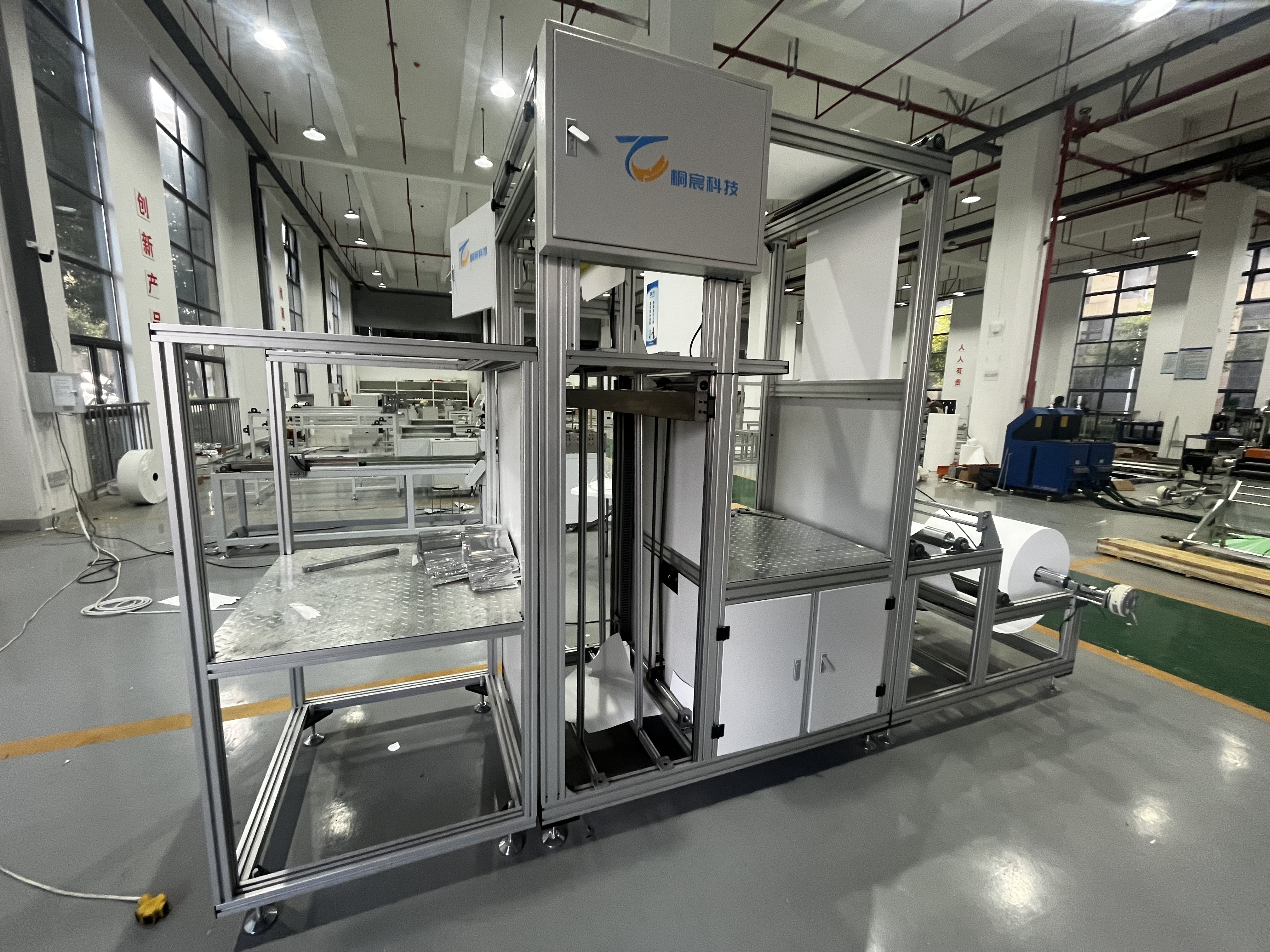 ガラス繊維紙を折り畳む機械